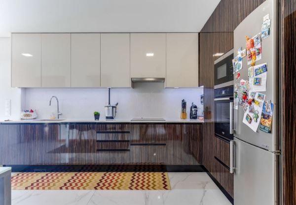 Cozinha moderna totalmente equipada, com zona de refeições