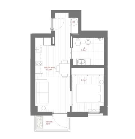 🟦 TIPOLOGIA: T1 SMART (T0+1)